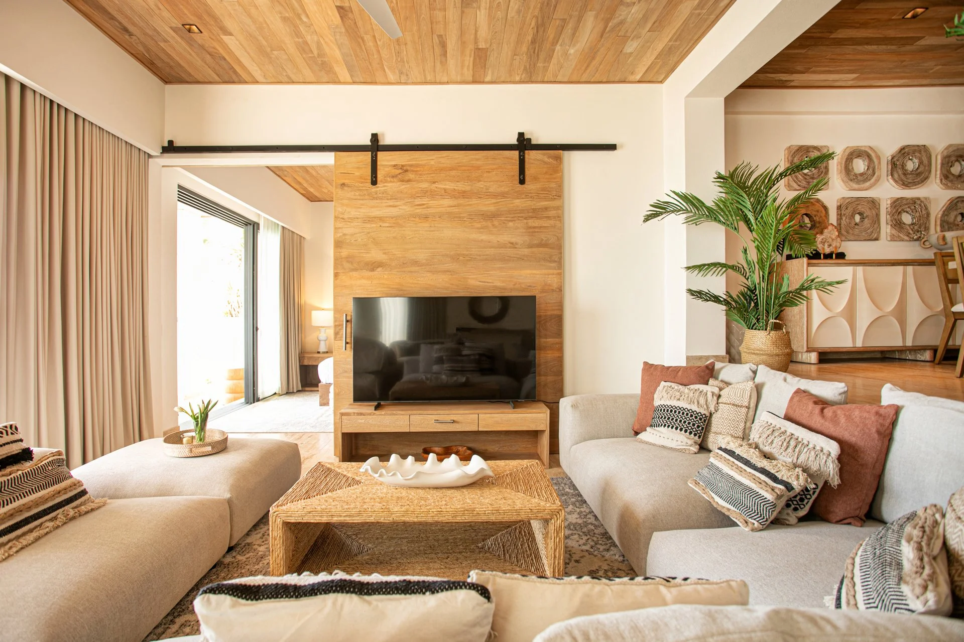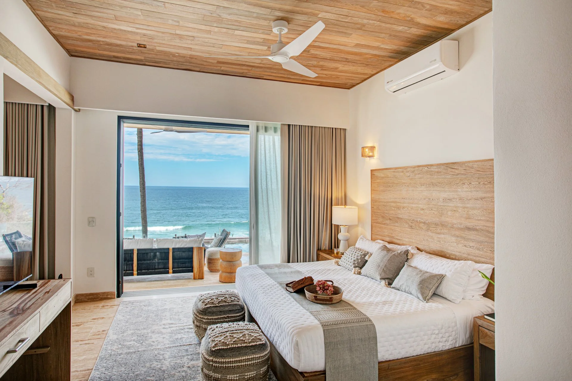 The Vision: Next came a full interior design plan inspired by the young couple’s travels to Tulum, Southern California, Morocco, and their residences in Punta Mita and Rancho Estates MX. The result: a harmonious blend of off-whites, linens, tactile accents, and curated artwork—all delivered on time, on budget and on brand.